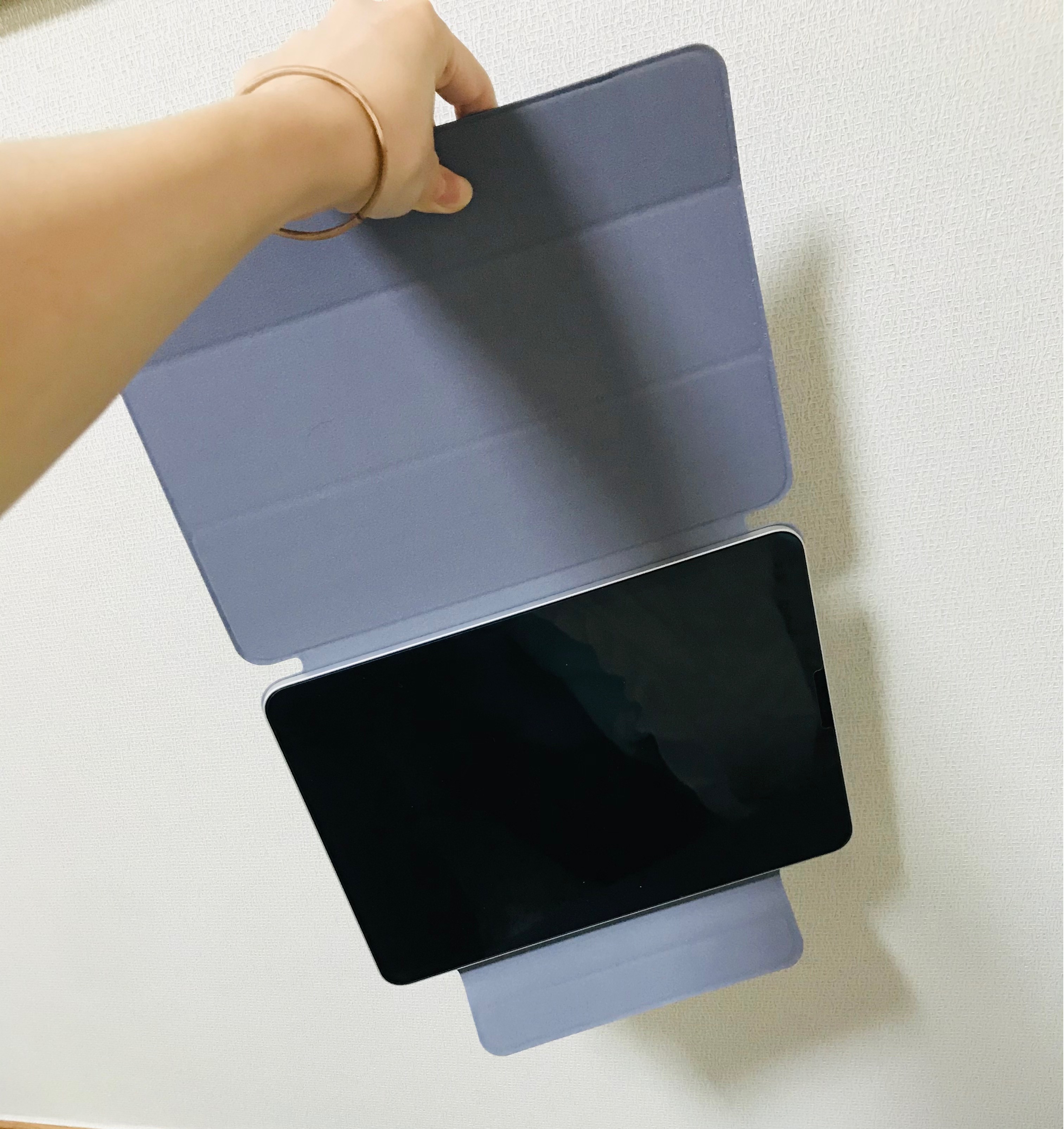 흔들지 않고 들고있기만 하면 잘 붙어 있다 ㅎㅎ 다른 케이스는 안 써봐서 비교는 못하겠지만 자석이 강력해봤자.. 너무 강력하면 패드 못뜯어낼테니깐 ㅎㅎㅎㅎ
